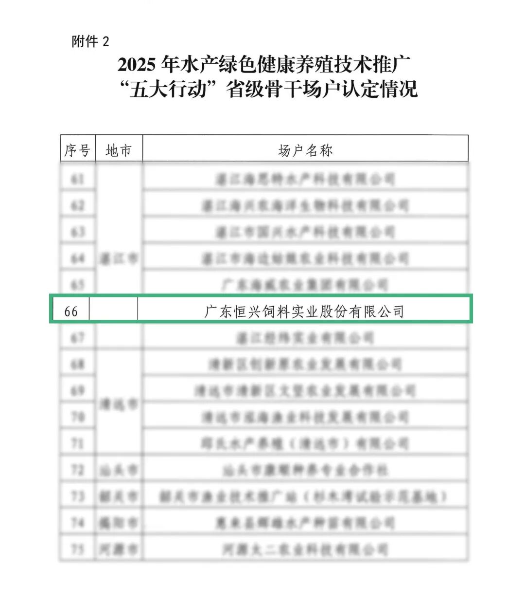 恒兴股份入选水产绿色健康养殖“五大行动”骨干场户
